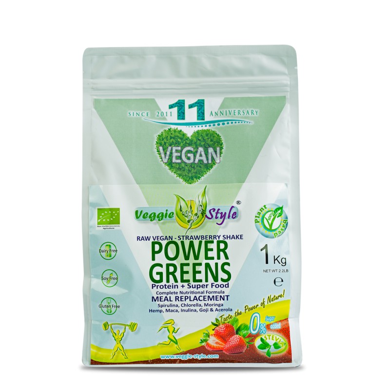 VEGGIE STYLE POWER GREENS je odličen prehranski nadomestek za zdrav način življenja in pripomore pri izgubljanju telesne teže. Sestavljen je iz posebno oblikovane formule z naravnimi super živili in izolatom rastlinskih proteinov, ki nam dajejo energijo in moč za ves dan. Shake oskrbi telo z vsemi potrebnimi hranili, ki jih potrebujemo, da ostanemo v dobri formi.